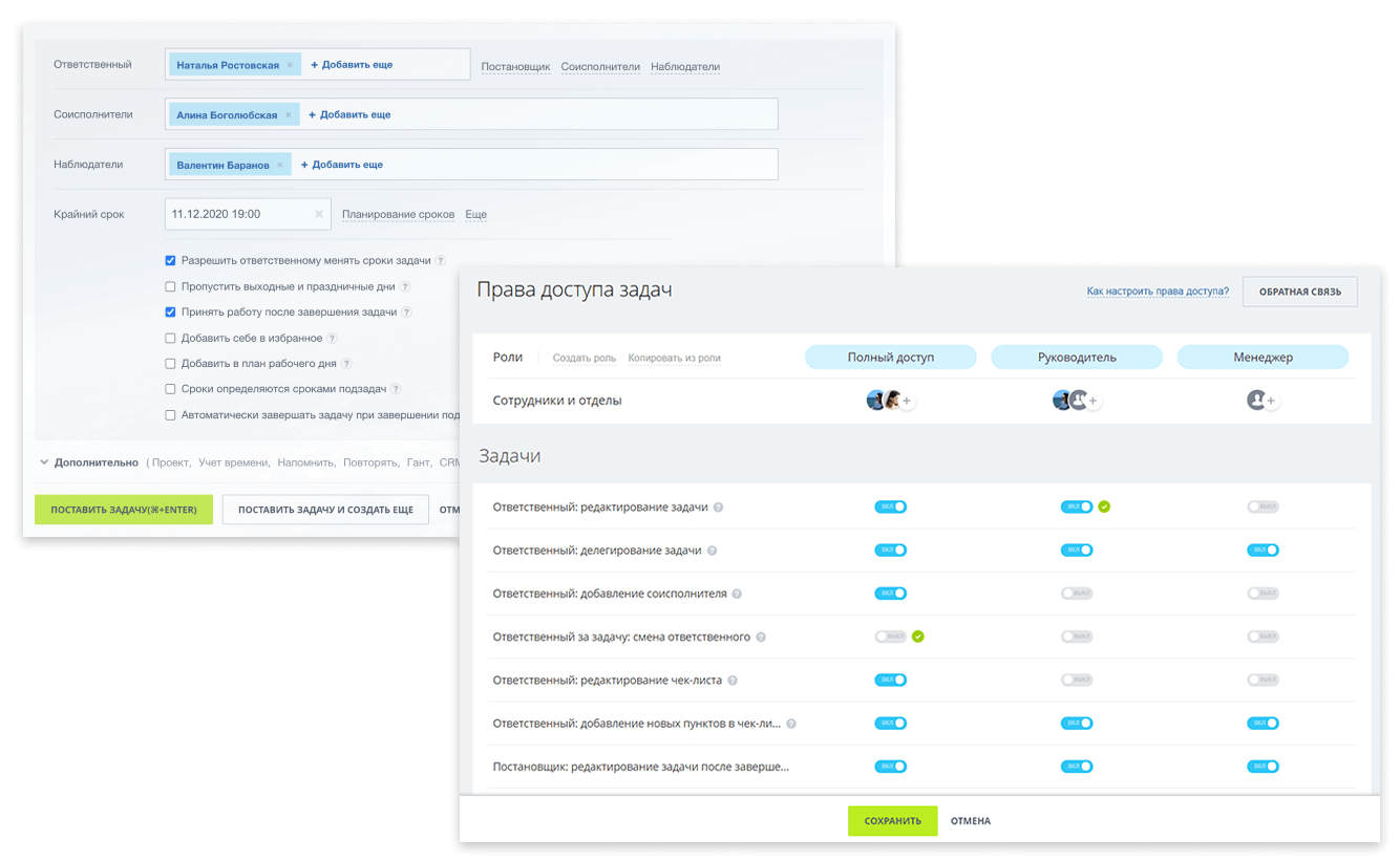 Ставьте и контролируйте задачи любой сложности; добавляйте чек-листы и файлы; выбирайте ответственных, наблюдателей и сроки в несколько кликов.